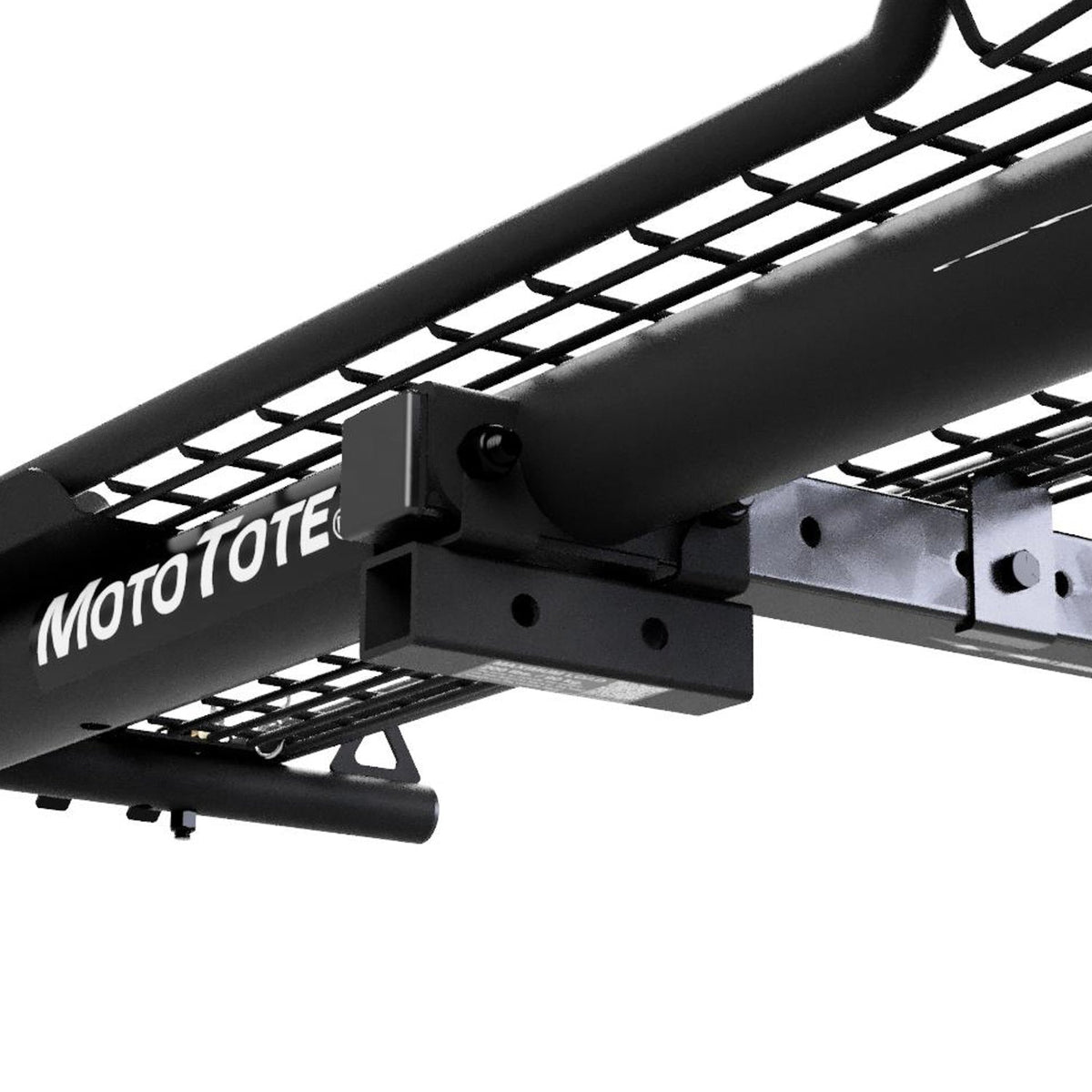 Modular 1.25" receiver add-on rated up to 200 lbs. (90 kgs.) depending on remaining tongue capacity (not compatible with MotoTote Mini electric bike racks).