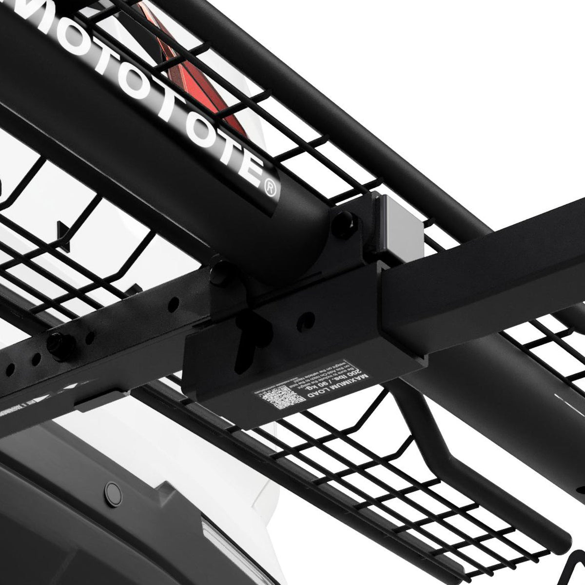 Modular 2" receiver add-on rated up to 200 lbs. (90 kgs.) depending on remaining tongue capacity (not compatible with MotoTote Mini electric bike racks).
