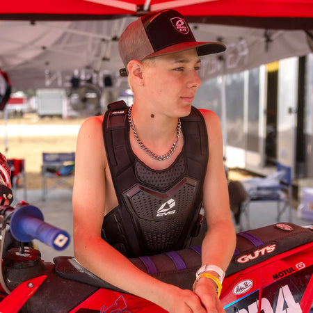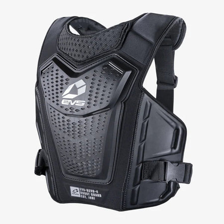 The EVS Revo 4 Roost Guard is a lightweight, minimalist solution for riders who want reliable roost deflection without added bulk. Featuring a fully vented polycarbonate front panel and a comfortable bio-foam backing, the Revo 4 provides essential upper body coverage in a streamlined design that stays cool and moves with the rider. Adjustable straps ensure a customizable fit, while its low-profile shape is ideal for use over or under a jersey. Perfect for motocross, off-road, pit bike riding, and other high-intensity sports where lightweight protection and ventilation matter most.