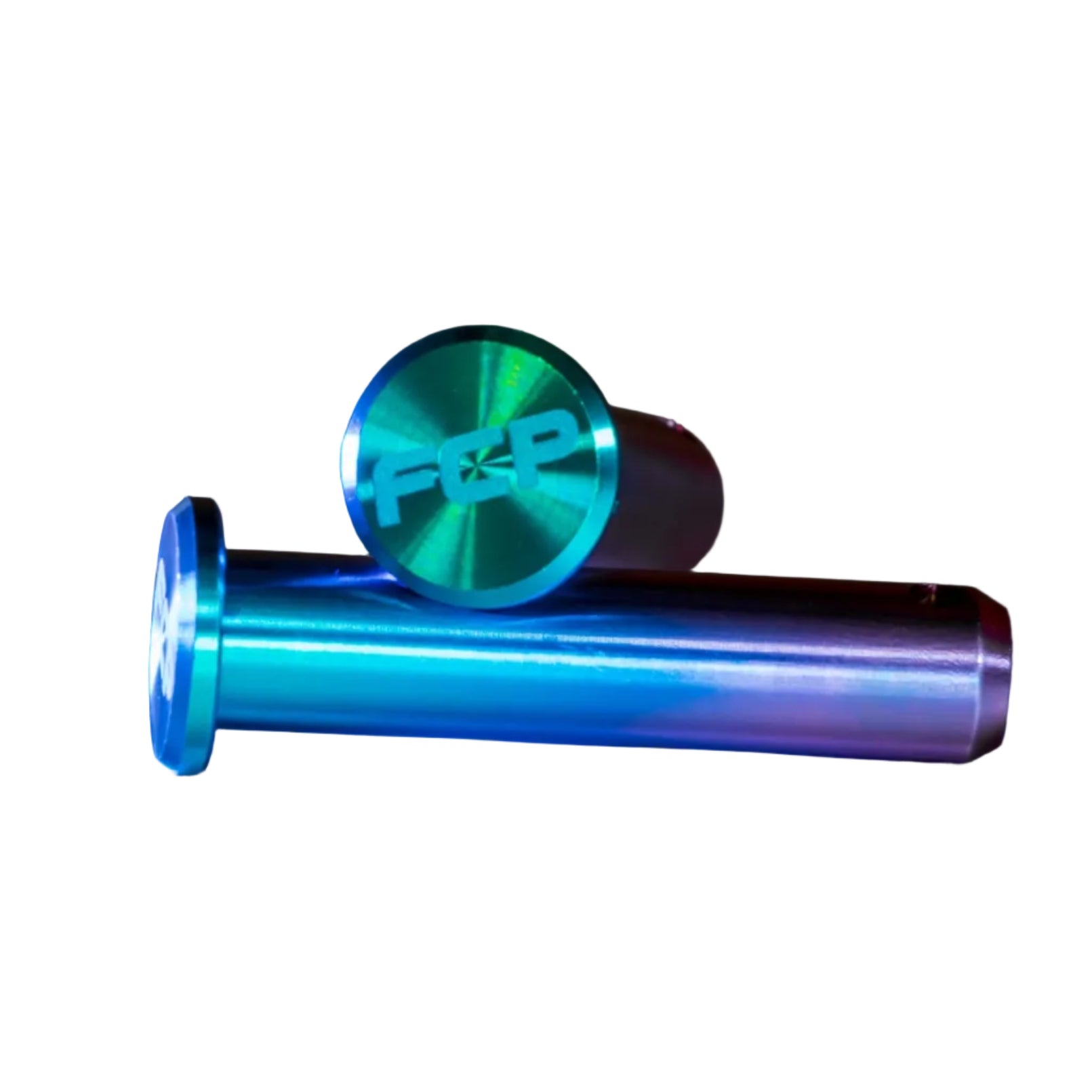 This kit includes the highest quality CNC Machined Titanium foot peg pins with Laser etched logo, Aluminum washers and cotter pins.