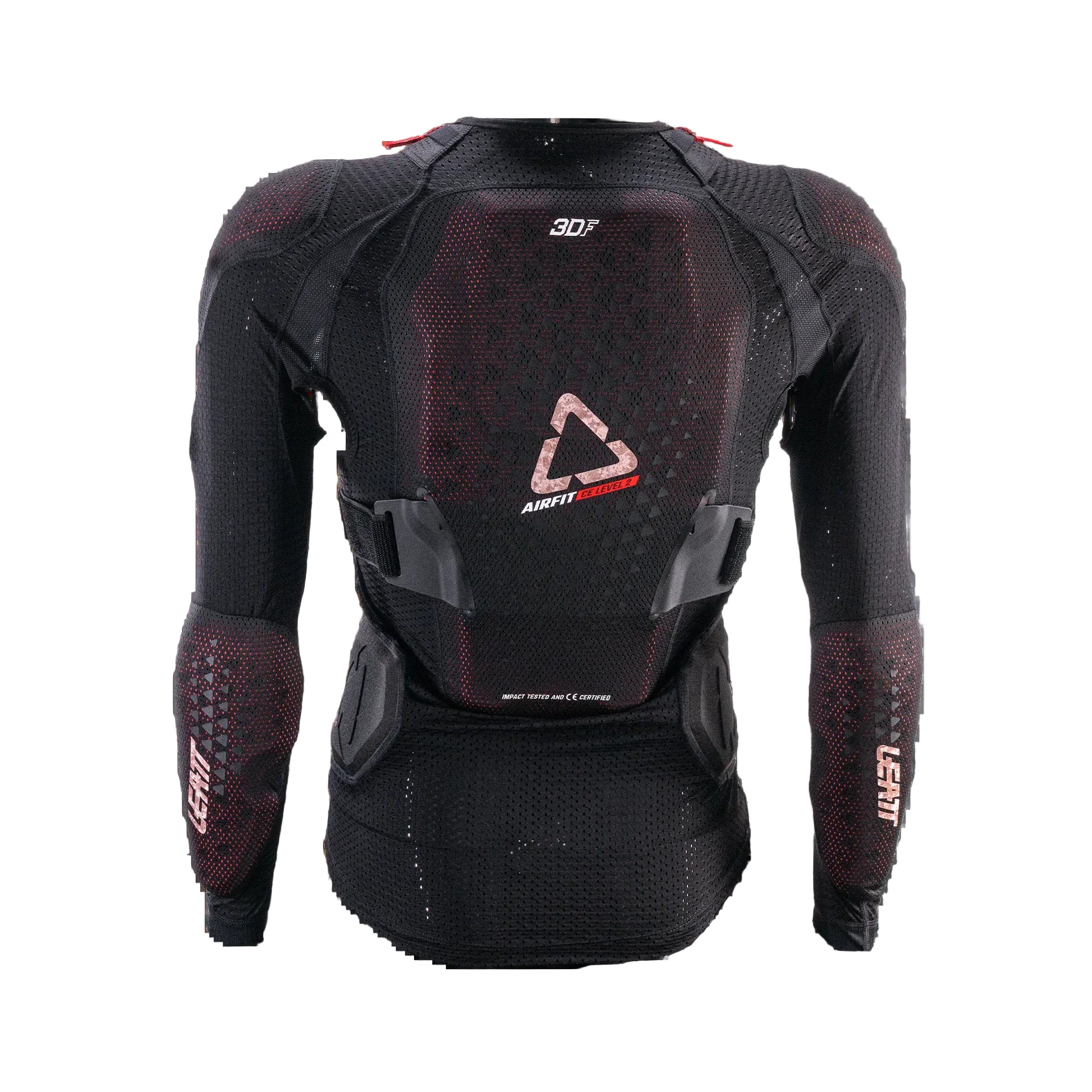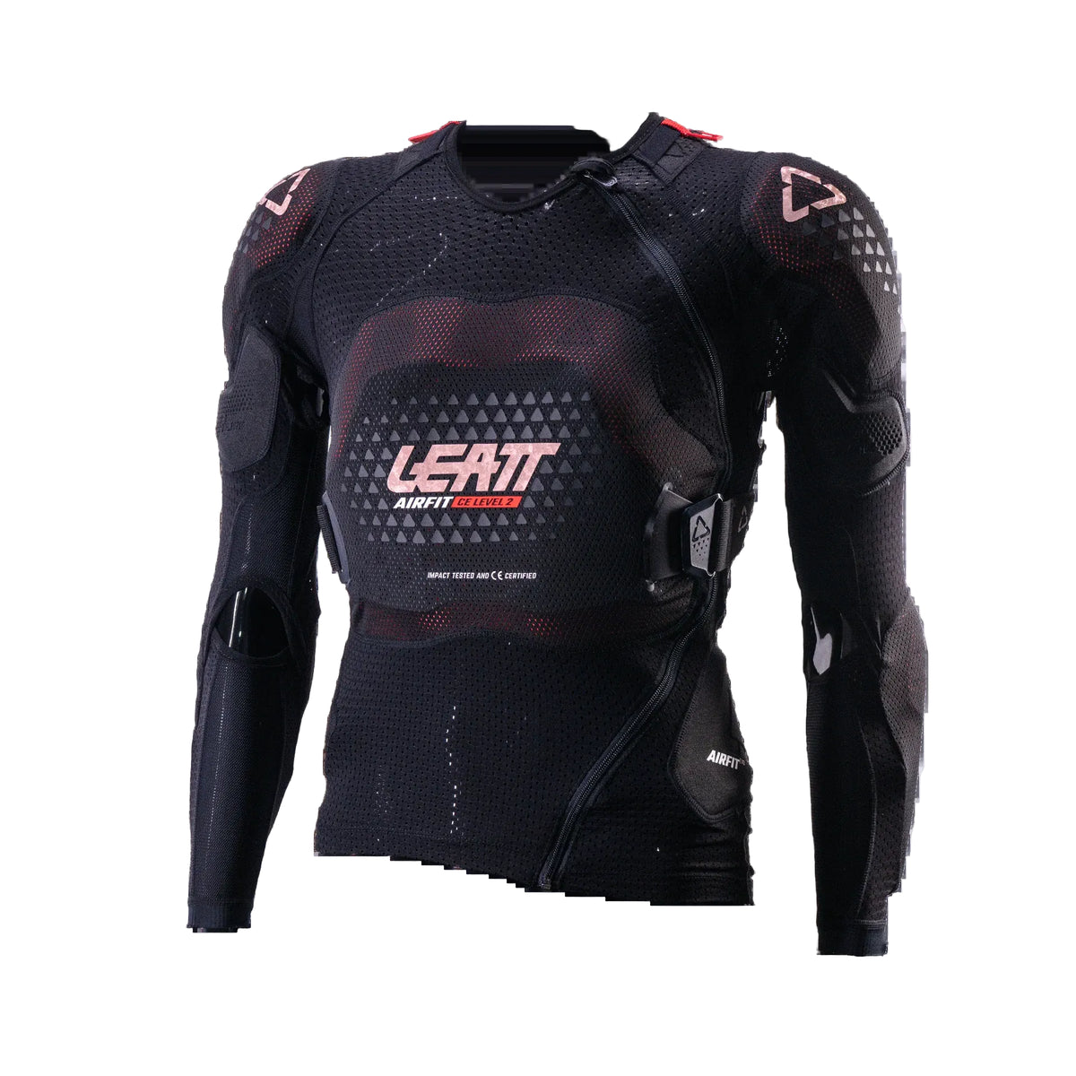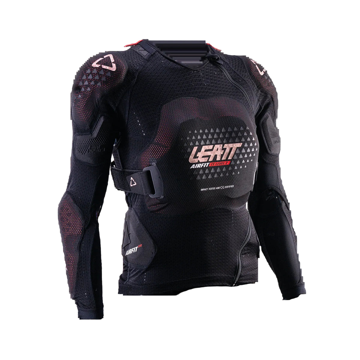 Total Leatt® protection score of 21 points | New larger chest impact area | 3D pre-curved design specifically for the female form: Chest EN1621-3 Level 2 | Back EN1621-2 Level 2 | Elbow and Shoulder EN1621-1 Level 1 | Elastic chest strap to give more secure protector positioning
