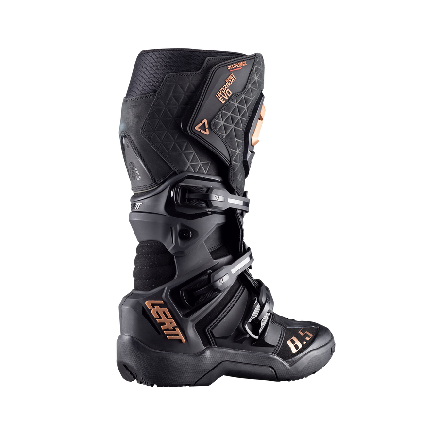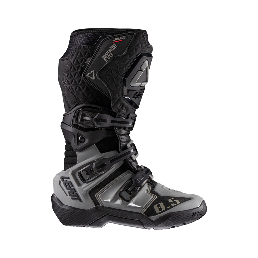 This hybrid construction combines the durability of offroad boots with the lightweight comfort of adventure boots for optimal performance on and off the bike. Perfectly balanced for enhanced maneuverability, this boot offers outstanding control and agility in every ride. The lower section of the boot is offroad inspired with its enduro sole and TPU shell for ankle security. The upper part is constructed from a high grade Nubuck leather which increases comfort and perfects the fit. The entire boot is lined with a HydraDri® Evo membrane for waterproof protection. The 8.5 HydraDri® boot has three durable buckles, secured by an extra-large SlideLock™ hook and loop system at the top. A large shin plate offers added protection from rocks and impacts.