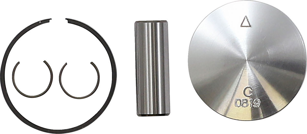 • Kit includes piston, ring kit, wrist pin, and circlips
