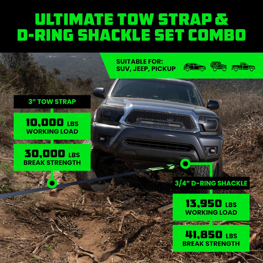 Rhino USA 30' Tow Strap & D-Ring Shackles Combo | RNO-SHACKSTRAP30