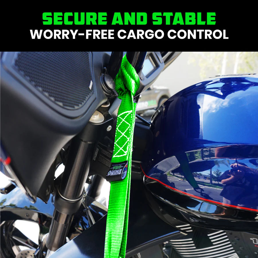 Introducing the Rhino USA Soft Loop Tie-Down Straps, the ultimate solution for secure and hassle-free transportation of your prized ride. Designed with precision and built for rugged durability, our straps offer unrivaled strength and reliability. Made with our exclusive poly/silk webbing blend, soft loops are used to protect paint and chrome on handlebars, swing-arms, etc. Engineered with a reinforced webbing that can withstand the toughest conditions, our straps provide peace of mind and eliminate any worries of slippage or loosening during transit