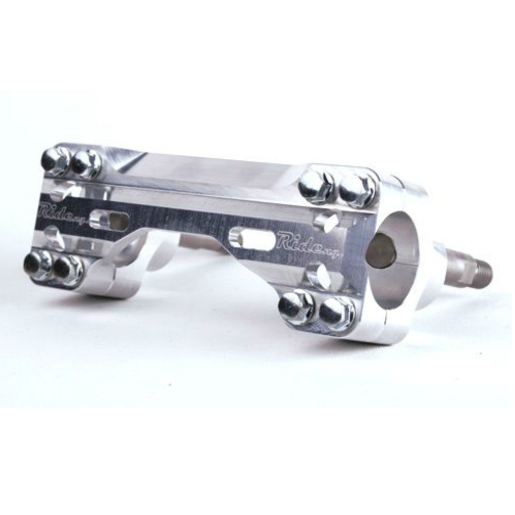 This one-piece 1 1/8” bar mount is super light with great strength and torsional resistance in the event of a crash. A great alternative to OEM bar mounts that allow the bars to twist when you tip over. Precision machined from aircraft quality aluminum, there is a 6mm difference between the forward and back mounting positions. Ride Engineering also machines their own stainless steel posts that prevent over tightening, unlike the cheap bolts used by other competing brands. They will fit stock or after-market rubber mounted triple clamps. Sized to be the same height as the stock YZ450F bar mounts.