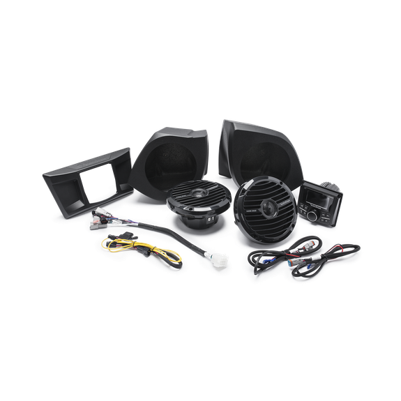 Our Stage 2 kit includes the components of the Stage 1 kit and adds front speaker enclosures and a pair of RM1652 speakers. This is ideal if you're looking to add some sound to your ride but may not be ready to add the amplifier or a subwoofer system yet.