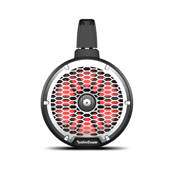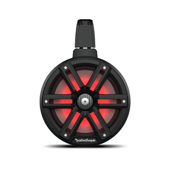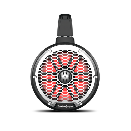 The M2WL-8B Color Optix™ 8" 2-way speakers deliver loud, clear, accurate sound, and light the way for your fresh or salt-water journey! The M2 can be installed using direct mount or a clamp mount method that provides 360-degree rotation on wake tower bar sizes from 1.5” to 3”. The M2 includes stainless-steel and black “sport” grille inserts and features a rear illuminated 3DIL™ medallion that can be rotated 360-degrees for proper orientation. The speakers connect with the Rockford Fosgate Color Optix™ Controller (sold separately) and RF Connect App, allowing you to customize both front speaker and rear medallion with your own color patterns.