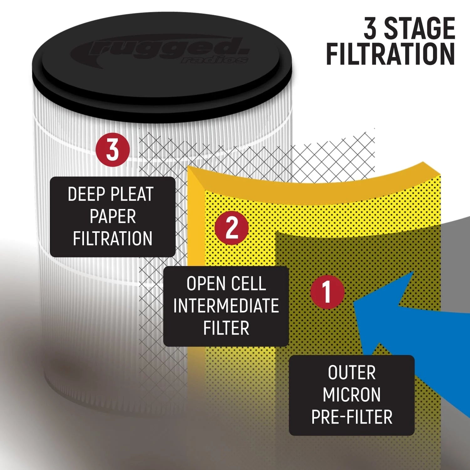 • Washable dry media air pre-filter