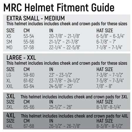 The perfect fit! Whether your kids are still growing or you are uncertain of your size, MRC Multi-Fit Sizing allows you to interchange the included cheek and/or crown pads to customize your fit for maximum comfort.
