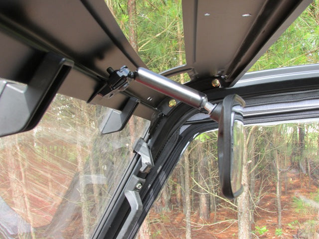 The wide angle rearview mirror is the perfect rearview mirror for UTVs. It has an incredible range of adjustments. The double ball joint allows the rider to position the mirror in any configuration they choose and the friction pads inside the ball joints keep the mirror from moving on rough trails. The oversized convex viewing surface reduces vibration and allows the rider to see anything happening behind them. The all steel clamp, shaft and bracket create a heavy duty mirror that can really take a beating.